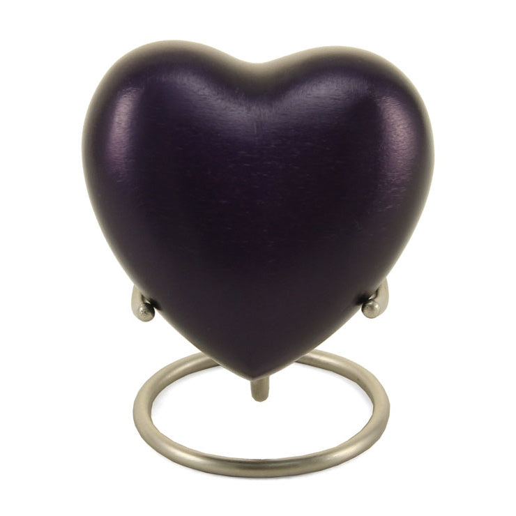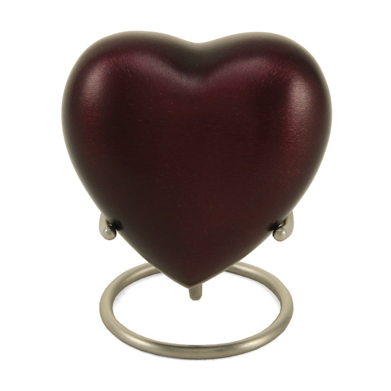 The Full Size Monterey Urn measures 11.9”H x 6.2” Diameter (200 cubic inches), the Keepsake Mini is 3.6”H x 2” Diameter (3 cubic inches), and the Keepsake Heart is 2.7”H x 2.9”W x 1.6” Diameter (3 cubic inches).